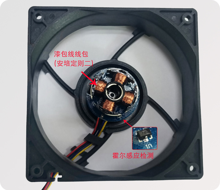 常規(guī)直流風扇主要是由轉子、定子、電機、外框這四部分構成。直流電機組成:由永磁體轉子、多級繞組定子、位置傳感器、電子換相驅動控制電路。轉子組成:由馬達殼+永久磁條+軸芯+扇葉。定子部分:漆包線+包塑矽鋼片+軸承+霍爾感應檢測+驅動電路板+軸。如圖所示: